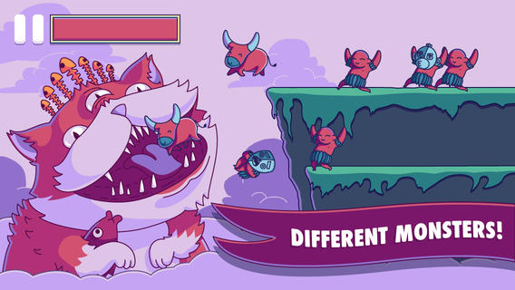 But simple controls need to be backed up by the visuals, which is where Don’t Eat People shines. The graphics are cartoony and colorful, and feels like a lot of attention was put into this area to give the game an identity. The interesting thing is your monster, which changes with each game and which takes up most of the screen, is constantly different and rewards multiple playthroughs. The music is pretty sweet too; it’s got that Crash Bandicoot tribal vibe, though it doesn’t feel like it’s trying to emulate that games aesthetic, giving it it’s own identity.
