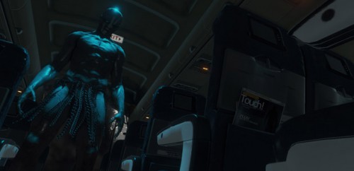 You play a man who has been travelling with his son on a plane going on a lovely, relaxing family holiday, when the plane is on the end of some heavy turbulence and the plane eventually goes down. If you were unsure about the games genre, whilst you are on the plane, the TV screen in front of you has a film poster of the latest blockbuster called ‘Necklace’ where the picture is of somebody’s throat has been slit and bleeding . . . Nice touch, something that could have easily been missed, I liked that.