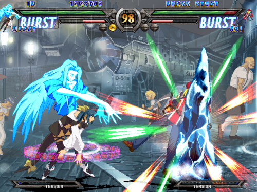 The game is set in a world after a war between humans and living weapons fueled by magic called Gears. Years later, a few powerful gears start cropping up throughout the series, and the tournaments of the game revolve around bounty hunters who compete for the price on their heads. The game has stories for each character, but they mainly follow a series of fights with banter connecting them, rather than a full character based story which is typical of the genre as a whole.