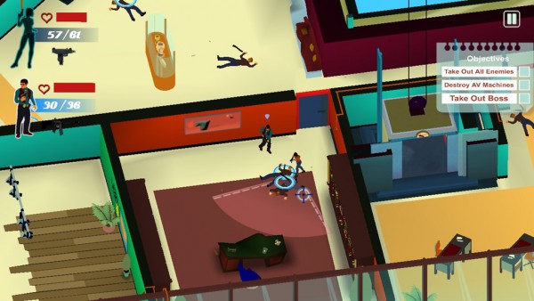 The gameplay is pretty dynamic; you move with the WASD keys and look around with the mouse. You also have an aiming reticule which the character will follow and will change to red every time you can succesfully hit someone. As I stated before, the camera angle is from a top down perspective but you can rotate the this with the Q and E keys which gives you a better perspective of what’s around you. The only issue that I found with this is that if the camera is in the wrong place and you shoot someone there is no way for you to know if someone is flanking behind you or not.